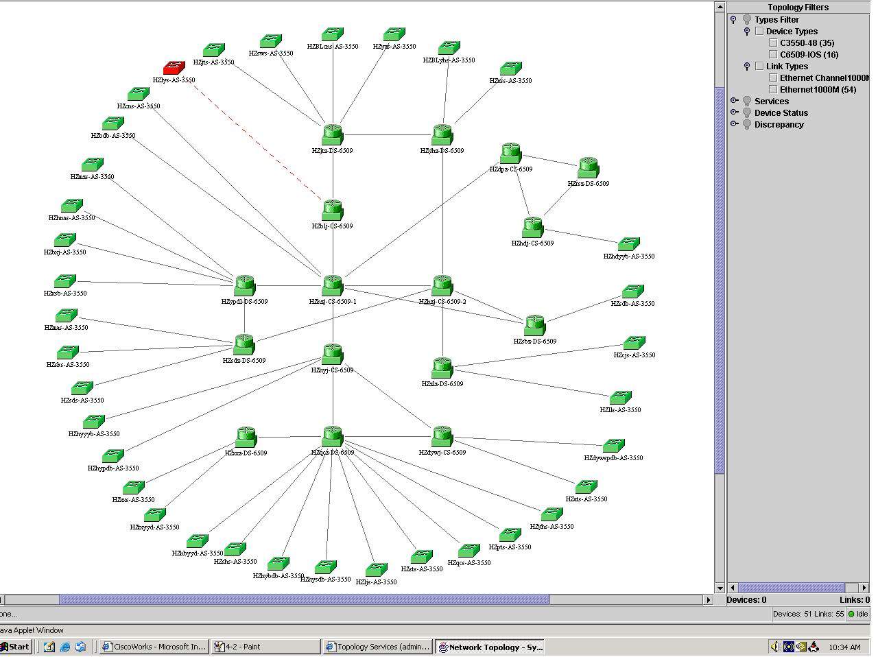 工程师能够对当前网络的拓扑结构一目了然,并且迅速判断各交换机的可用性和各条级联链路的状态。以拓扑结构图为基础,还可以使用View、Telnet等网管工具,对具体设备进一步配置,非常方便。拓扑服务通过SNMP协议自动收集网络设备上的信息,记录系统日志,为后期分析提供了重要的依据。